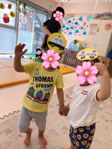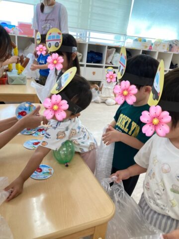 夏まつりを行いました🏮みんなの大好きな乗り物のお面をかぶってお祭りスタート✨