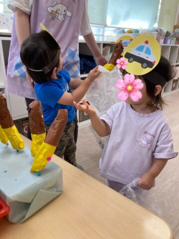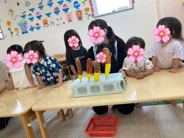 みんなでお製作をしたチョコバナナやうちわのお店では、「くーだーさい!」「どうぞ!」と元気な声が聞こえてきましたよ♬