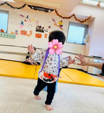 みんなで作ったかぼちゃのバックをもってゲームスタート!