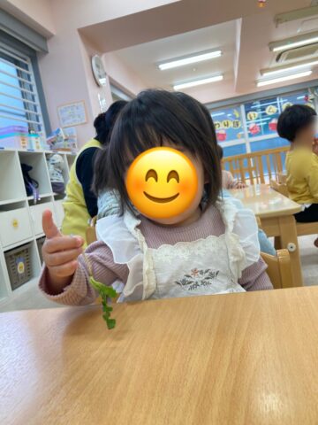 実際に七草を見たり触ったりして、興味津々の子どもたち👀
