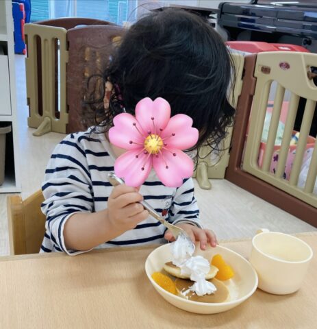 4月の食育では進級のお祝いにホットケーキを作りました♪
